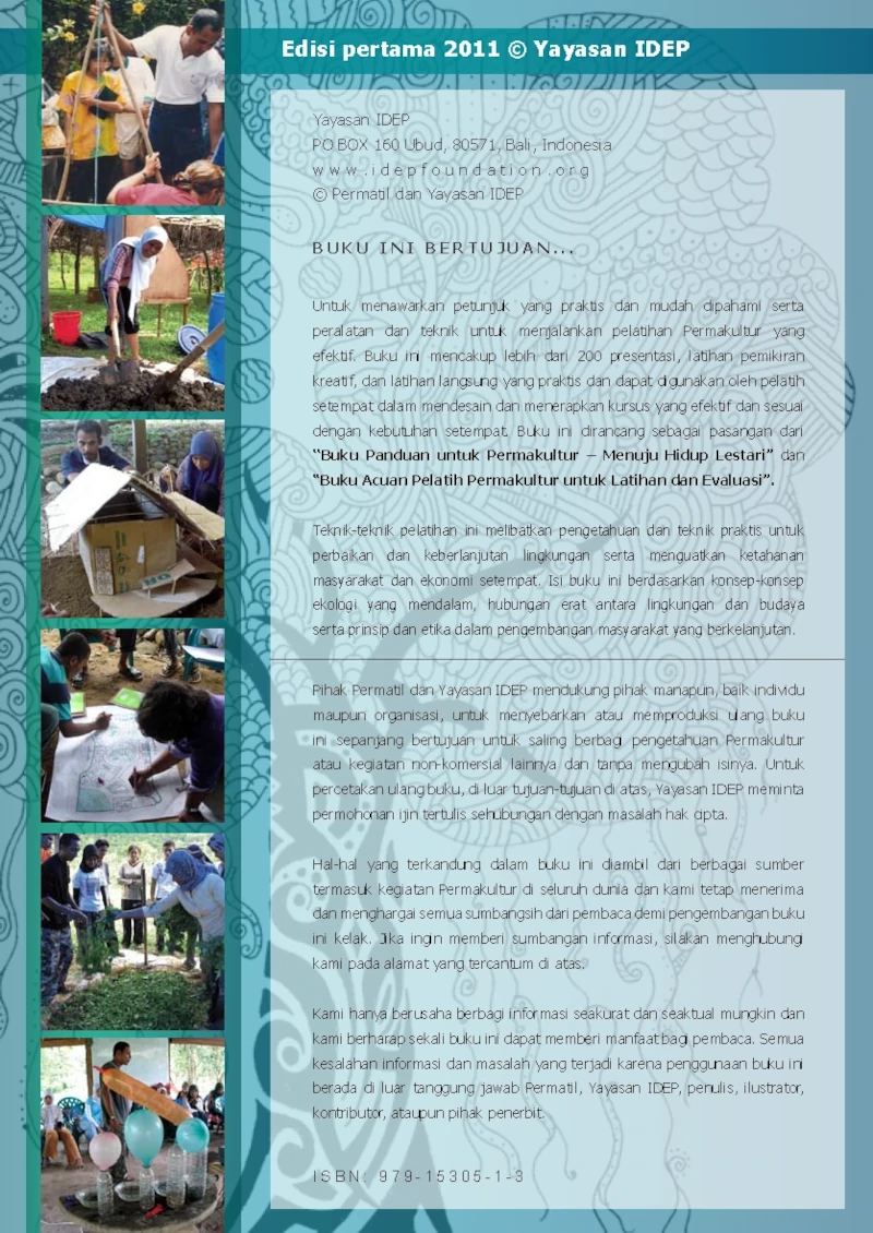 Panduan dan acuan untuk pengembangan permakultur di Indonesia, diterbitkan oleh Yayasan Idep Selaras Alam bagi para pelatih permakultur maupun untuk kelompok-kelompok masyarakat.